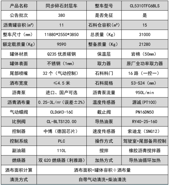 ??????湖北程力汽車:程力CL5310TFC6BLS型陜汽德龍前四后八瀝青碎石同步封層車產(chǎn)品型號及參數(shù)配置,程力CL5310TFC6BLS型陜汽德龍前四后八瀝青碎石同步封層車高清圖片,程力汽車系列程力CL5310TFC6BLS型陜汽德龍前四后八瀝青碎石同步封層車最新報價請撥打客服熱線。車輛主要配置 產(chǎn)品商標 程力牌 公告批次 382(擴展) 產(chǎn)品名稱 同步碎石封層車 產(chǎn)品型號 CL5310TFC6BLS 總質量(Kg) 31000 罐體容積(m3) 額定載質量(Kg) 9590,9525 外形尺寸(mm) 11080,11280,11880 × 2550 × 385...
