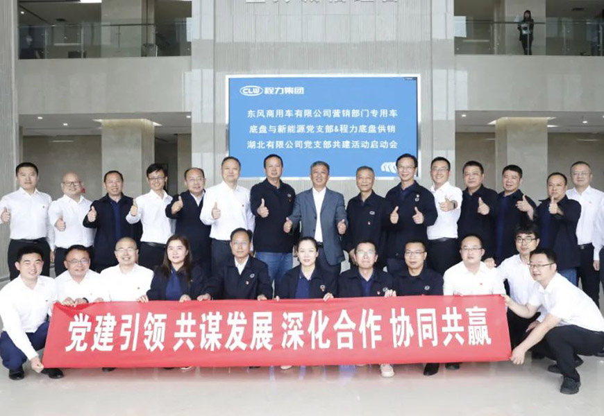 5月末,程力集團黨委牽頭,東風(fēng)商用車有限公司營銷部門專用車底盤與新能源黨支部攜手程力底盤供銷湖北有限公司黨支部,聯(lián)合開展“奮進新時代,共創(chuàng)向未來”共建活動。