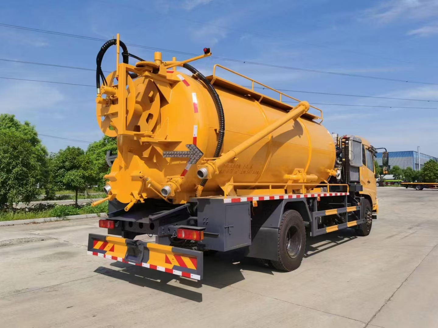 | 上裝配置 | 罐體容積15立方左右,清水罐5立方,其余為污水,罐體8mm厚,封頭8mm厚,舉升頂為自卸中置頂,副駕駛一側(cè)清水罐和污水罐用DN100球閥互通,另罐頂裝一個(gè)互通,副駕駛一側(cè)按照公告圖片安裝爬梯;清水罐:品孚350高壓泵,罐頂水車罐口一個(gè),帶爬梯,高壓管100米22號(hào)高壓管,尾部液壓卷盤,左右各裝一個(gè)消防栓進(jìn)水口,清水罐裝兩側(cè)各一個(gè)小球閥,罐底裝一個(gè)DN65排水閥, 吸污罐:一個(gè)散水罐口,罐體內(nèi)部鋪1.2米不銹鋼板,罐內(nèi)爬梯,罐體內(nèi)部防浪板加固,水循環(huán)泵水箱為碳鋼材質(zhì).副發(fā)濰柴375馬力配SK-30水循環(huán)泵,副駕側(cè)排150鋁合金球閥,開600小蓋排污口,尾部600小蓋左側(cè)一個(gè)150排污口,右側(cè)一個(gè)100的進(jìn)料口,側(cè)邊一個(gè)100排清水,罐體尾部?jī)蓚?cè)工具箱,1根10米吸污管,箭頭燈,手動(dòng)油門… | ||