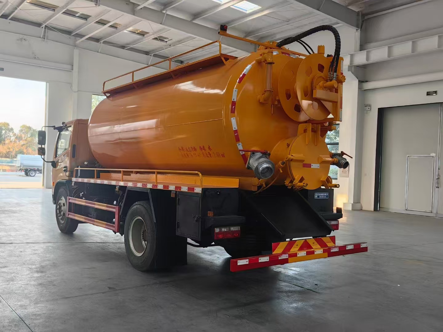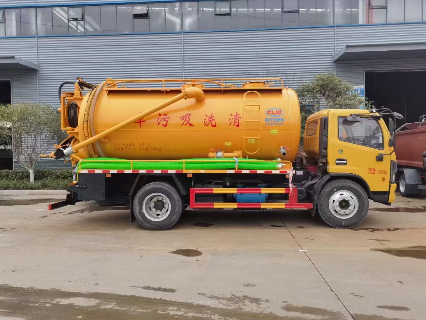 | 上裝配置 | 吸污罐容積約9立方,清水箱約4立方,污水罐6mm制作,清水罐和污水罐安裝互通。清水罐一個(gè)量水管,水箱最低點(diǎn)一個(gè)DN65球閥,帶消防接頭,品孚255流量高壓泵,帶60米19號(hào)高壓管,卷盤液壓旋轉(zhuǎn)180度,液壓收放管. 污水罐:SK-15水循環(huán)泵,水循環(huán)泵水箱為碳鋼材質(zhì),頂部防溢閥位置盡量最低,后蓋600液壓打開,100球閥直通罐頂吸污尾部一個(gè)150的排污球閥,吸污壓力表裝在水箱附近,罐體尾部兩側(cè)工具箱,手動(dòng)油門,1根8米吸污管帶陰陽端接口,一個(gè)水雷槍頭,其他廠內(nèi)標(biāo)配… | ||